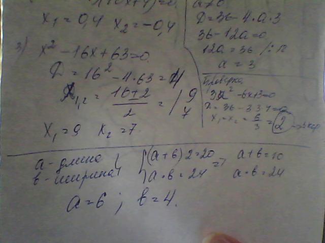 х²-16х+63=0 х1+х2=16 и х1*х2=63⇒х1=9 и х2=7