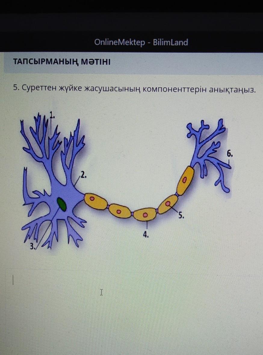 увы, я не знаю казахский язык, но по рисунку я поняла, что здесь нужно написать , какими цифрами обозначено строение нейрона.