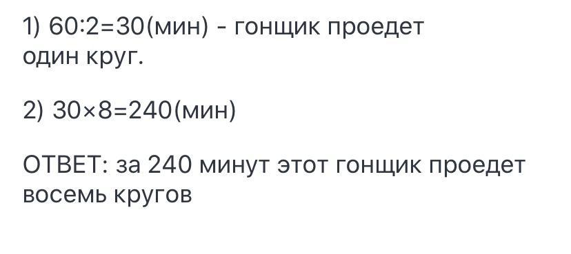 ОТВЕТ: за 240 минут этот гонщик проедет восемь кругов
