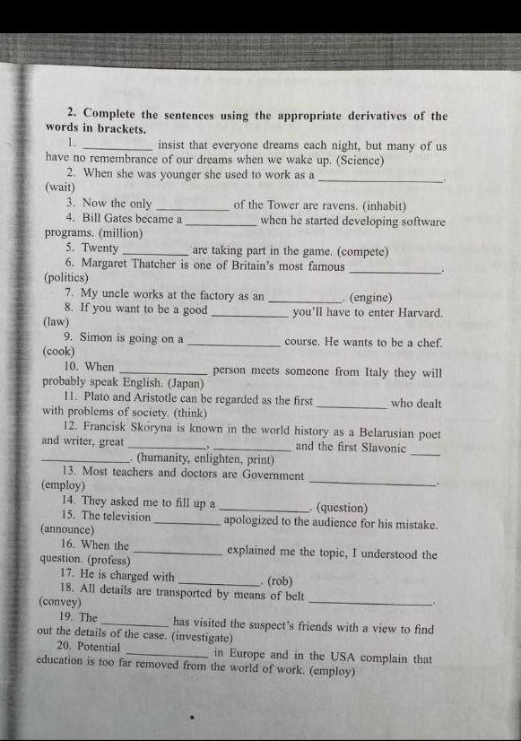 Завершите предложения, используя соответствующие производные слов в скобках. Срочно!