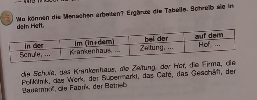 in der: Schule, Firma, Poliklinik.