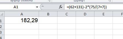 Вычисли значение математического выражения в MS Excel: (62+131)−2(75:(7+7)). (Ответ округли до сотых)