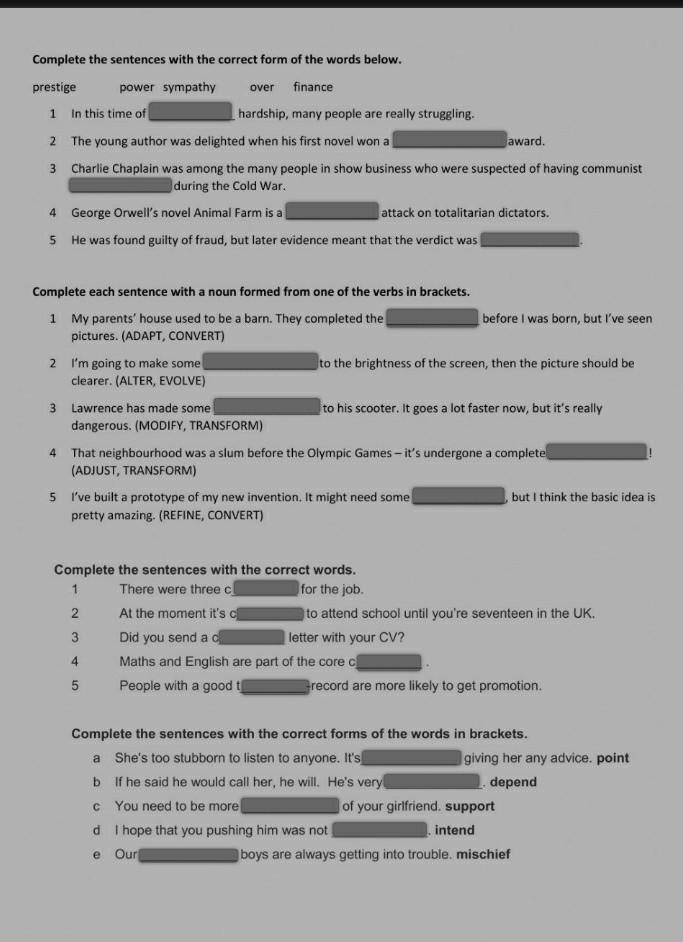 1) adaptation; 2) alteration; 3) modifications; 4) transformation; 5) refinement