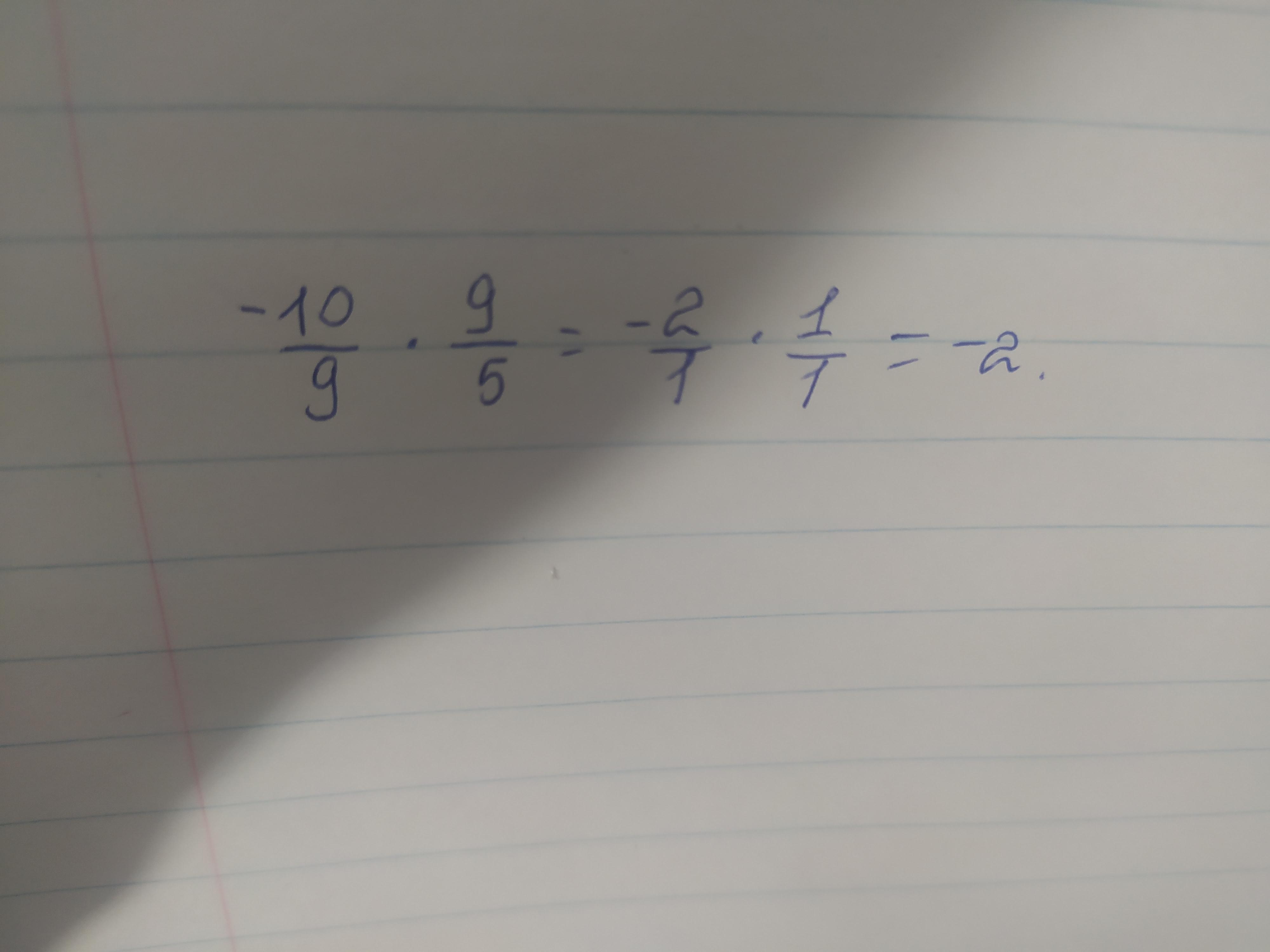 (мы сокращаем 10 и 5 на 5,и 9 и 9 на 9 получаем то есть получаем -2*1=-2)