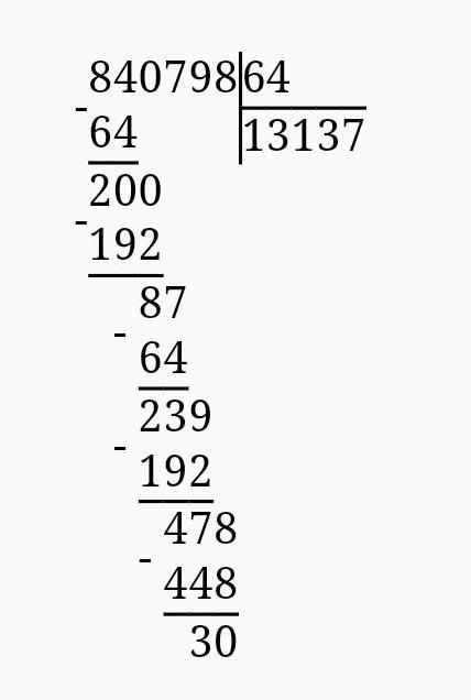 13137 целых 30 в остатке = 13137 30/64 = 13137 15/32