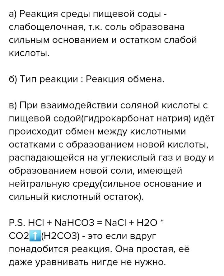 б) Как называется реакция между соляной кислотой и раствором пищевой соды