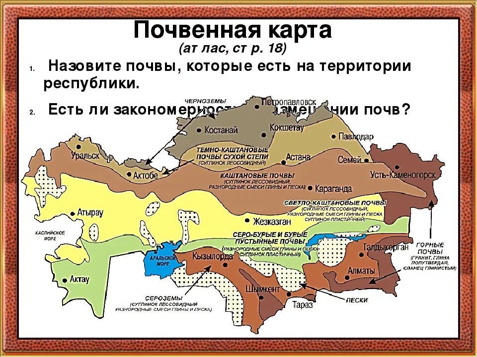 1 сероземы, пески, горные почвы, бурые пустынные почвы.