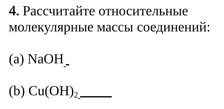 a) M(NaOH) = n(1) × Ar(Na) + n(1) × Ar(O) + n(1) × Ar(H) = 22 + 16 + 1 = 39