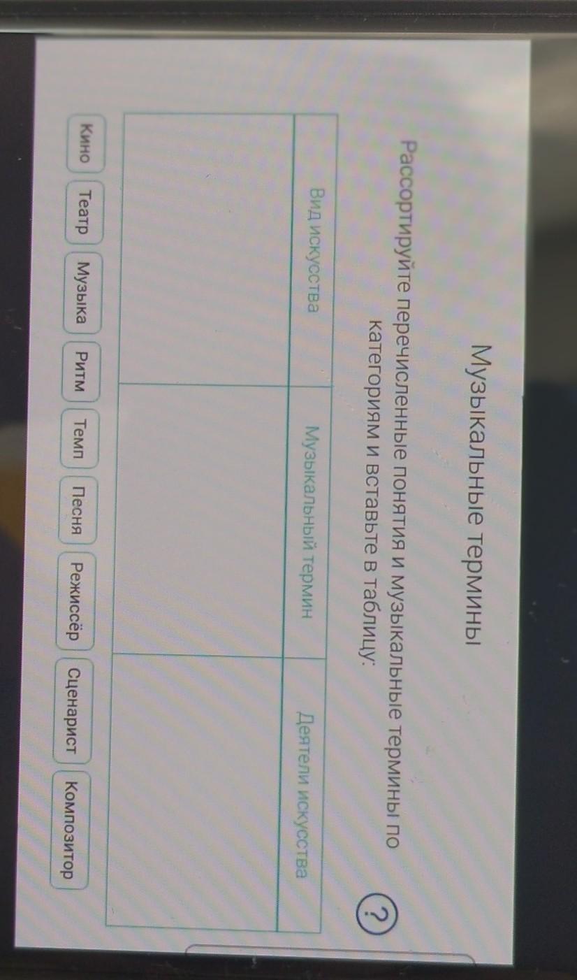 вид искусства: театр, кино, музыка, песня