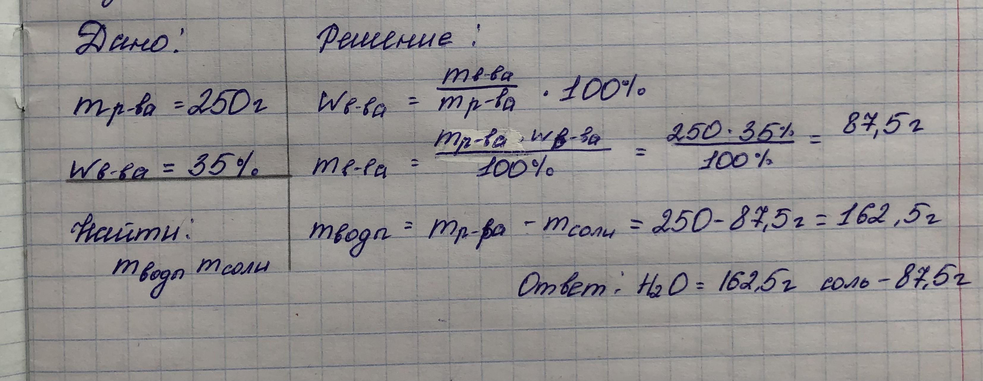 А) Рассчитать массу соли и воды, которые надо взять для приготовления 250 г