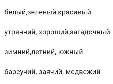 Белый, зелёный, красивый, барсучий, заячий, медвежий, хороший.