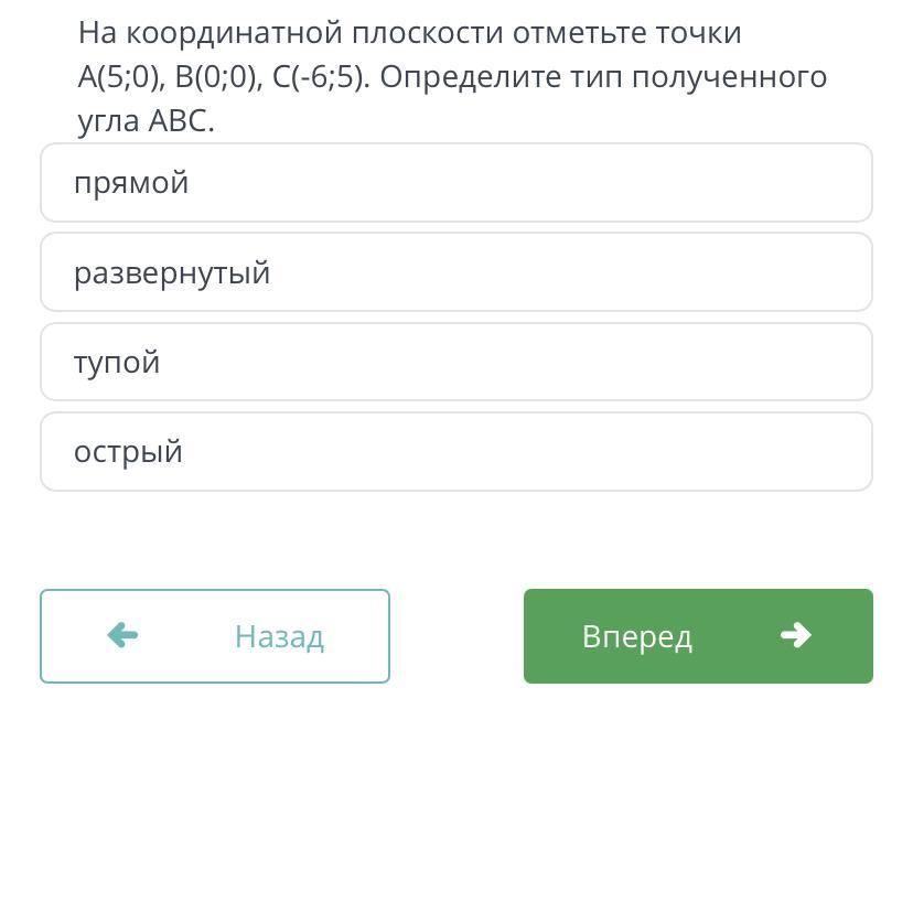 Тип полученного угла АВС - тупой