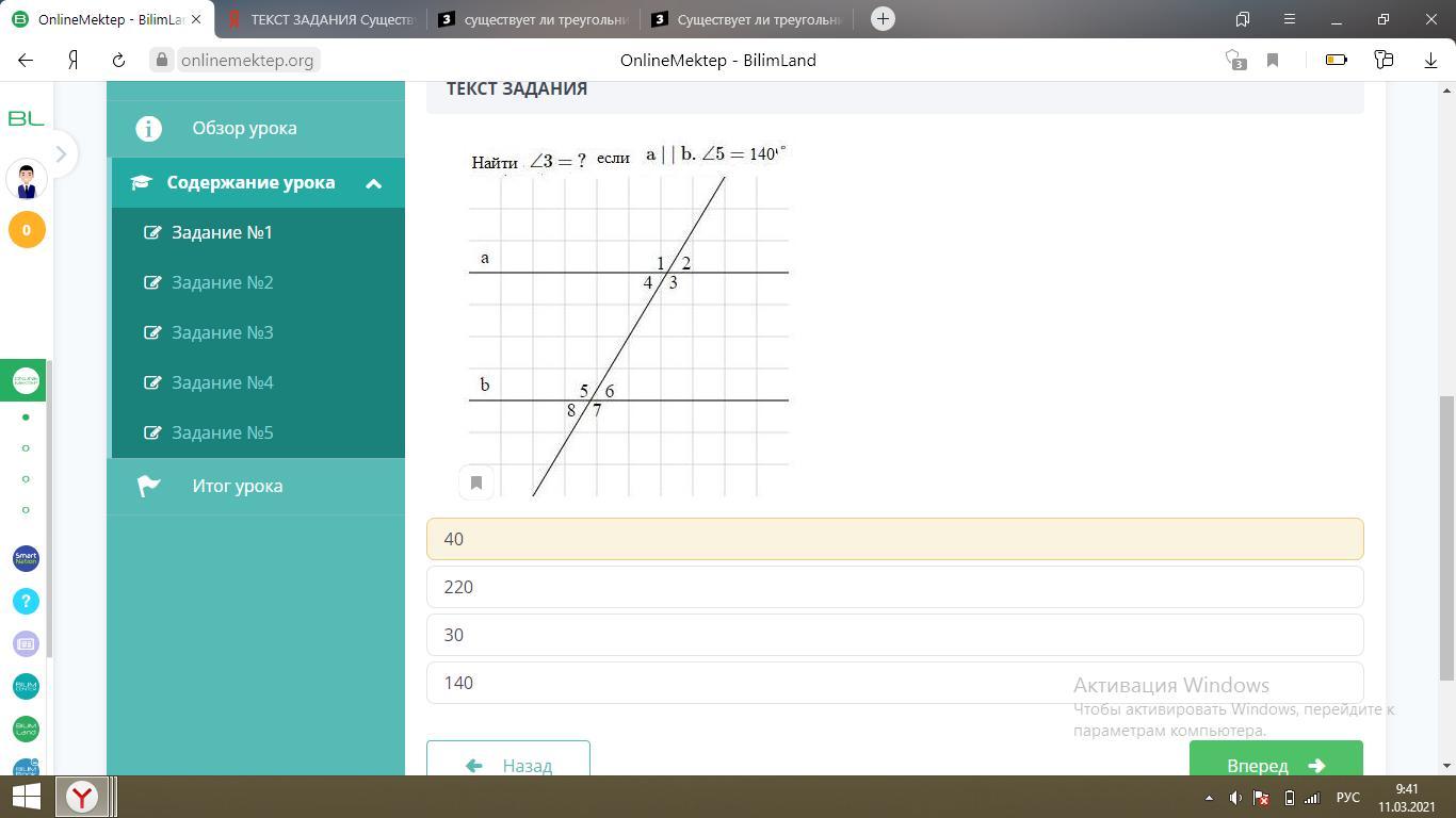 Ответ: 140, так как а||b, значит угол 5 = угол 3