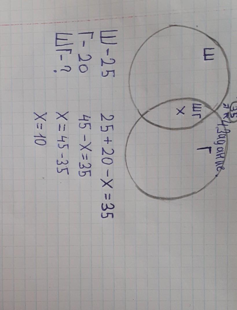 35 учеников зарегистрированы в школьной или городской библиотеках.Из них 25 регулярно посещают школьную библиотеку , а 20 - городскую.По условию задачи составить диаграмму ЭЙЛЕРА - ВЕННА и ответить на вопросы.