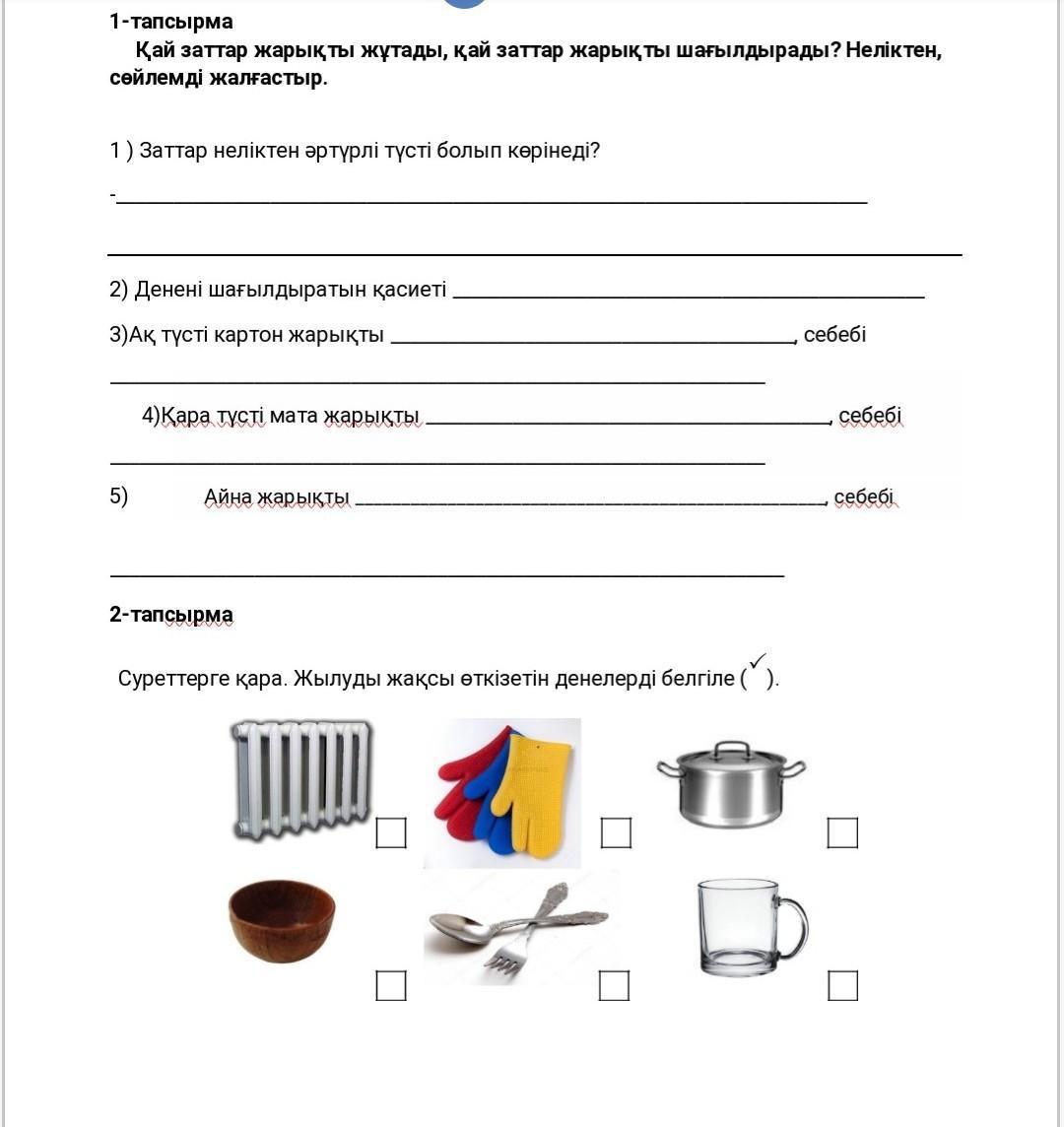Сүреттерге қара. Жылуды жақсы өткізетін денелерді белгіле.