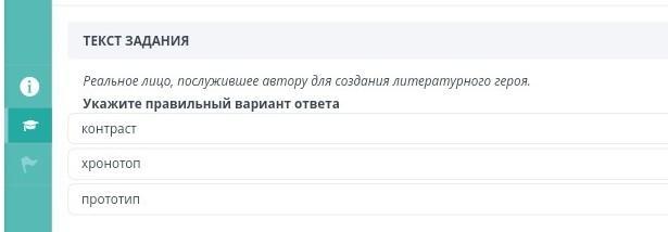 Реальное лицо, послужившее автору для создания литературного героя. Укажите правильный вариант ответа контраст хронотоп прототип.