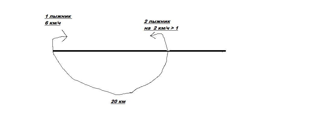 6+2=8(км/ч) скорость 2 лыжника