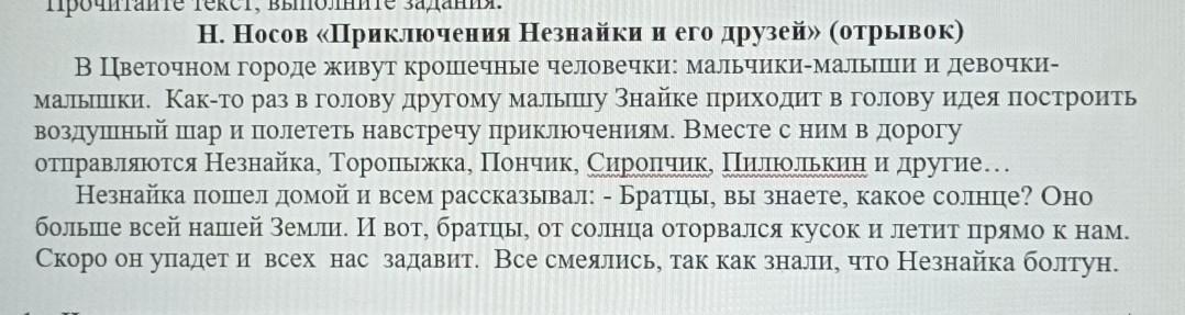 Н. Носов «Приключения Незнайки и его друзей» (отрывок) Составьте простой План к тексту.
