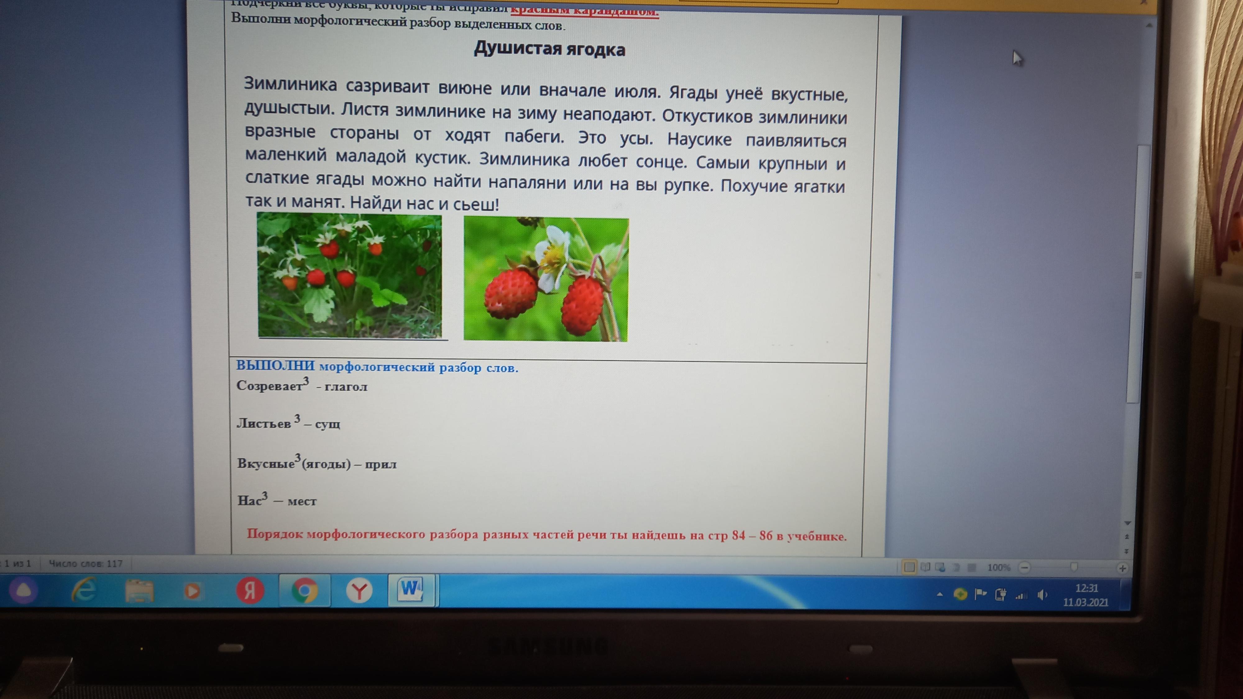 Земляника созревает в июле и начале июля. Ягоды у нее вкусные, душистые. Листья землянике на землю не падают. От кустиков земляники в разные стороны отходят побеги. Это усы. На усике появляется маленький, молодой кустик. Земляника любит солнце. Самые крупные и сладкие ягоды можно найти на поляне или на вырубке. Пахучие ягодки так и манят. Найди нас и съешь!