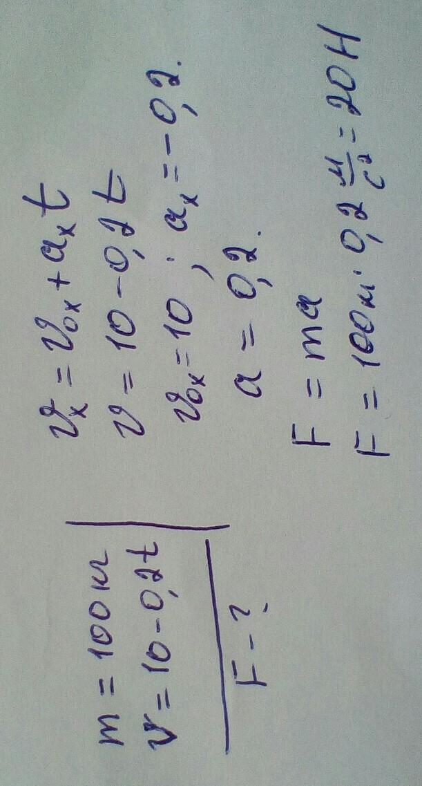Маса тіла 100 кг Визначте силу яка діє на тіло якщо швидкість тіла змінюється за