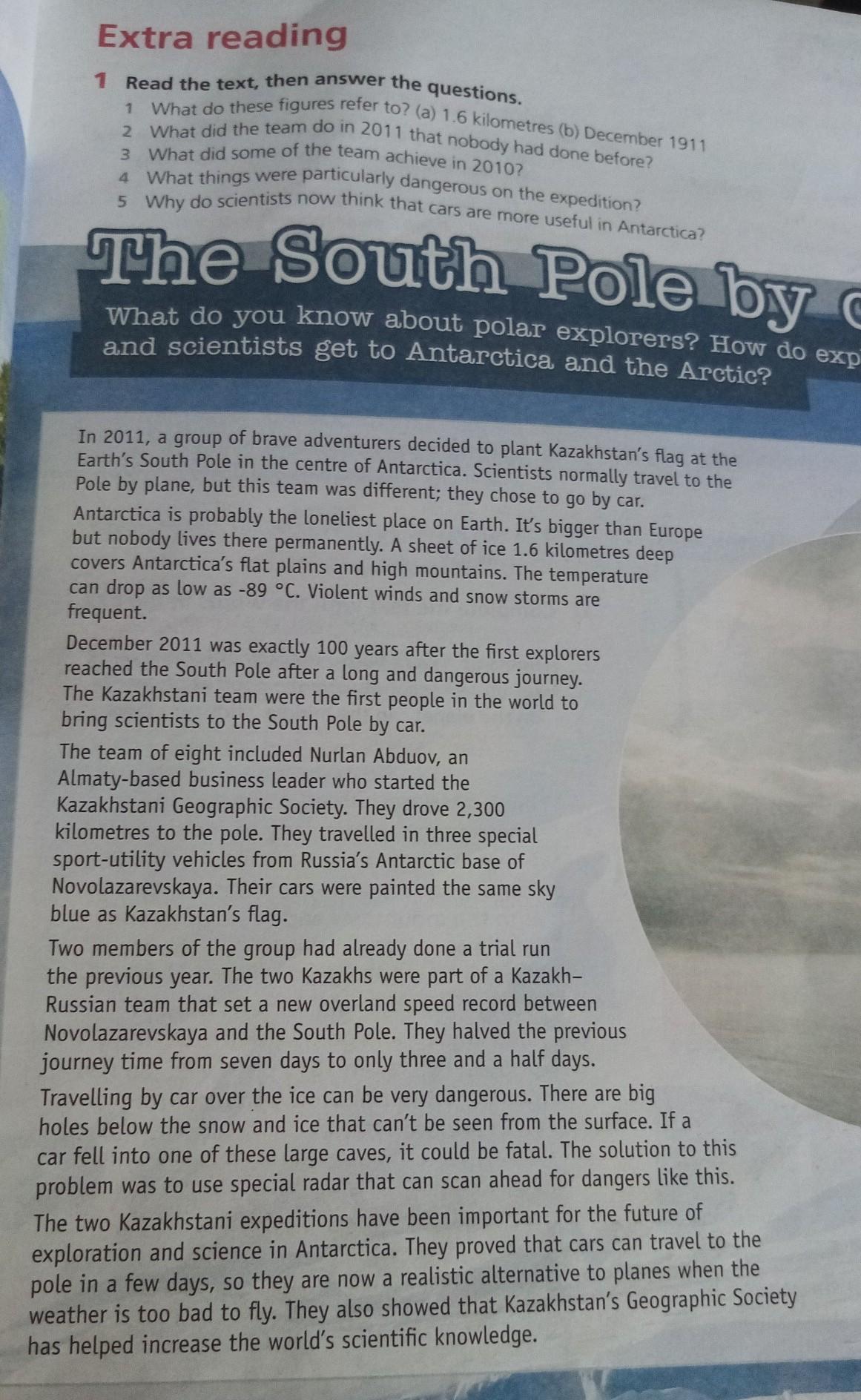 1. a 1.6 km- how deep the ice is, b December1911 - when explores first reached the South Pole.