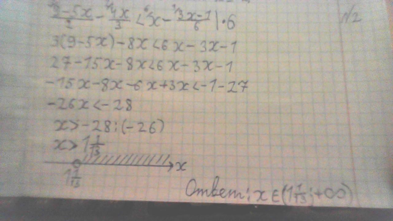 Решите неравенство: (9-5x)/2-4x/3 с координатной прямо
