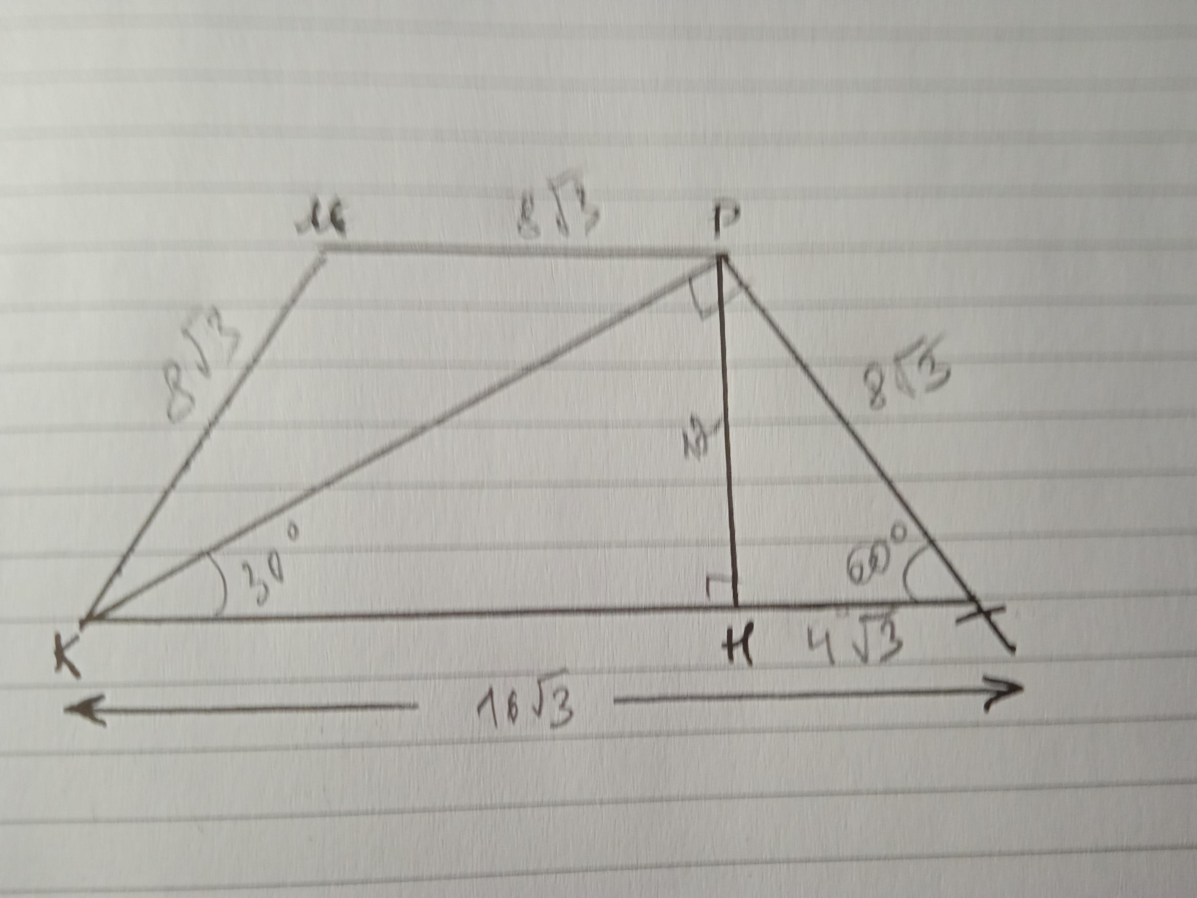 Найдем МР. ∠МРК=∠РКН=30° как внутренние накрест лежащие при МР║КТ и секущей КР; ∠МКР=60-30=30°, значит, ΔКМР - равнобедренный, МР=КМ=8√3 .