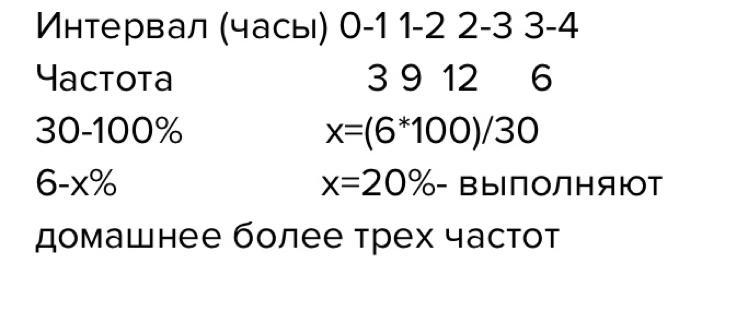 б) найдите процент учащихся, которые выполняют домашнее задание более 2х часов.