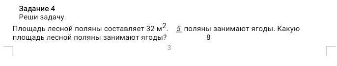 Площадь лесной поляны составляет 32 м2. 5 поляны занимают ягоды. Какую площадь лесной поляны занимают ягоды?