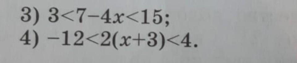 1) 3<7-4 х<15 Составим систему неравенств {7-4х>3{7-4х<15(тут если что одна фигурная скобка)