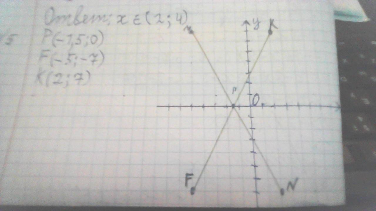 5. В координатной плоскости постройте точку F, симметричную точке М(-5,7) и точку K, симметричную точке N(2;-7) относительно оси ОУ. Найдите координаты точки P пересечения отрезков МN и FК. Назовите координаты точек F и K.