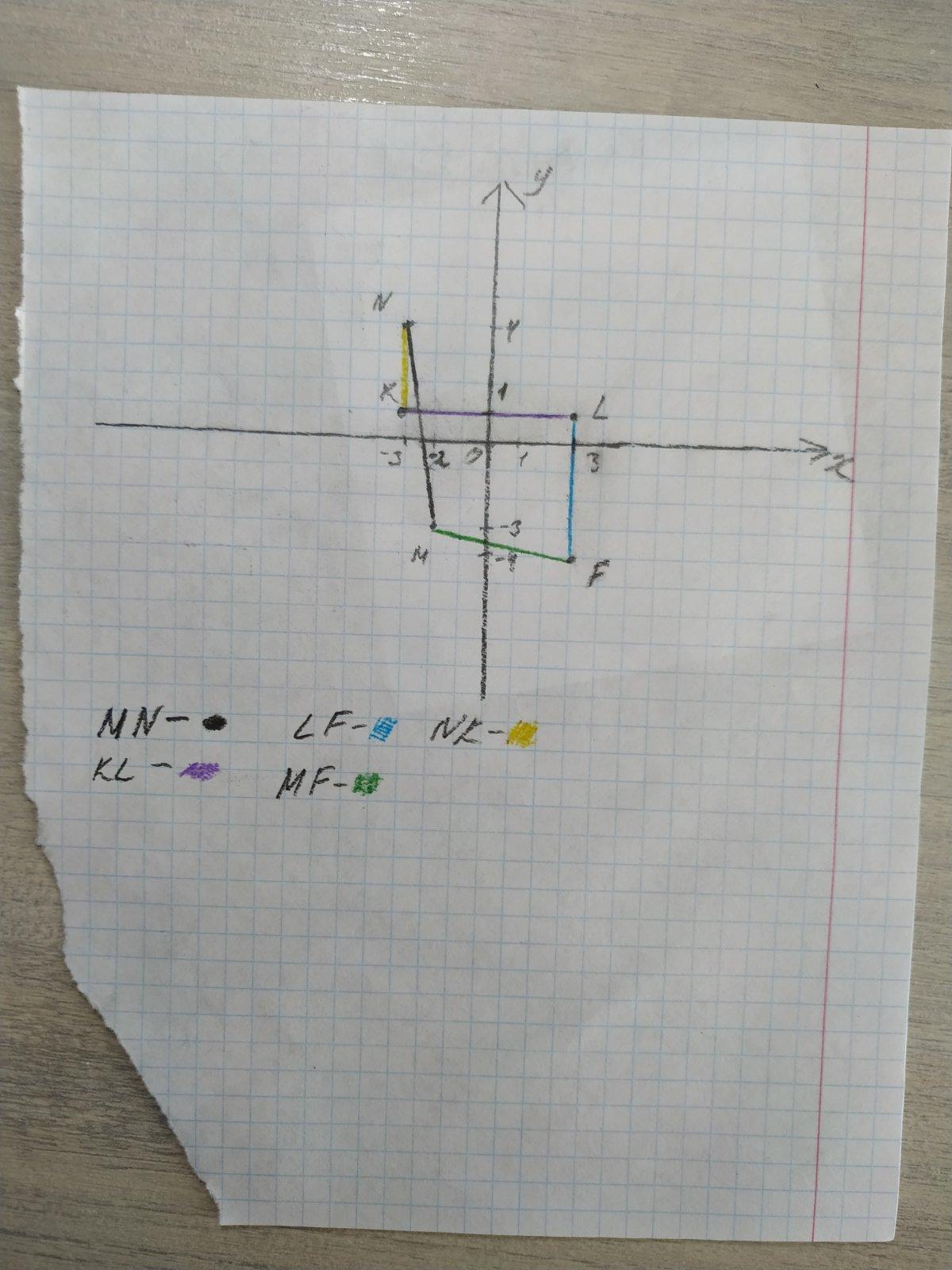 5. На координатной плоскости отметьте точки K(-3;1), M(-2;-3), N(-3; 4), L(3;1), F(3;-4) и проведите отрезки MN, KL, LF, NK, MF.