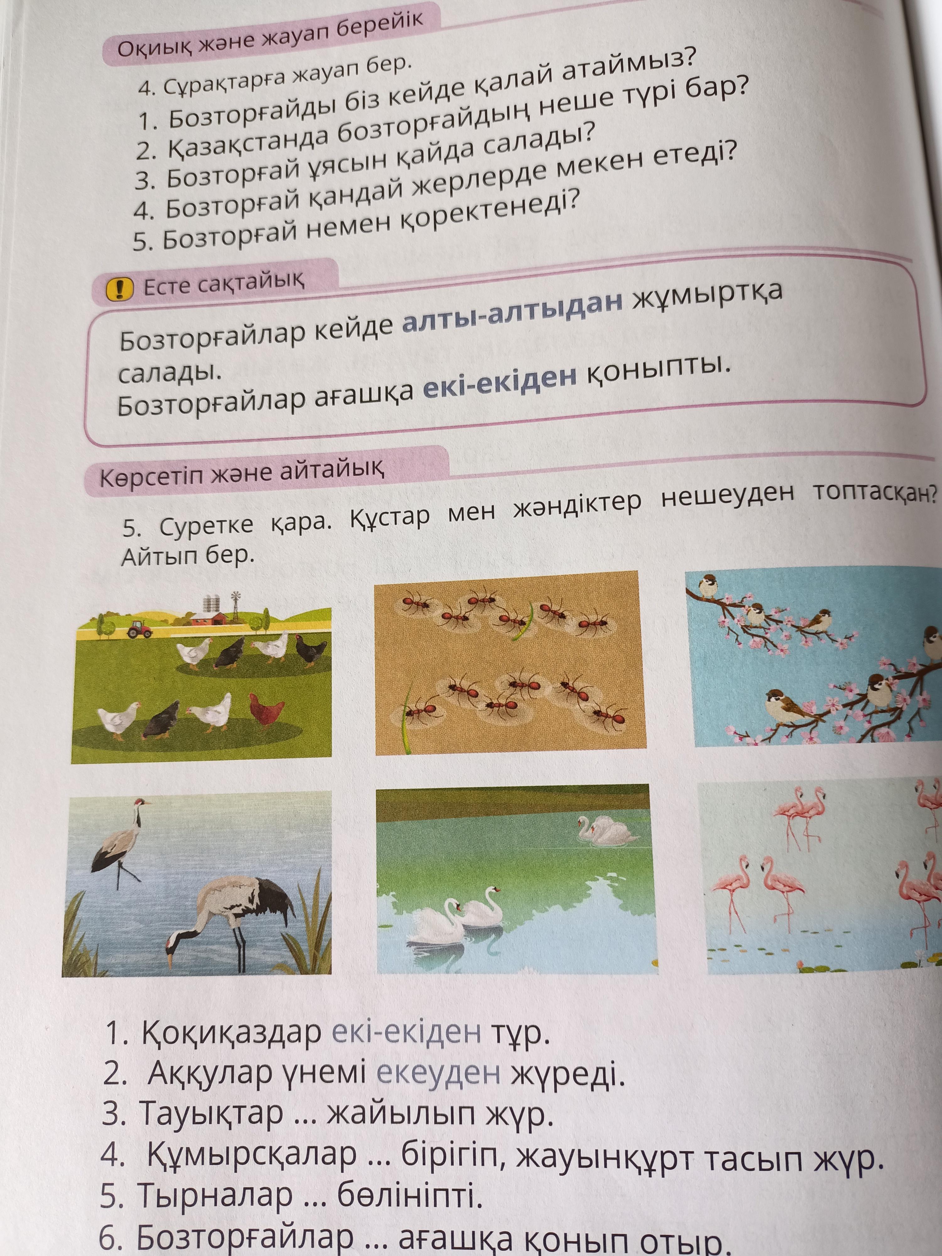 Бозторғайлар үш-үштен ағашқа қонып отыр.