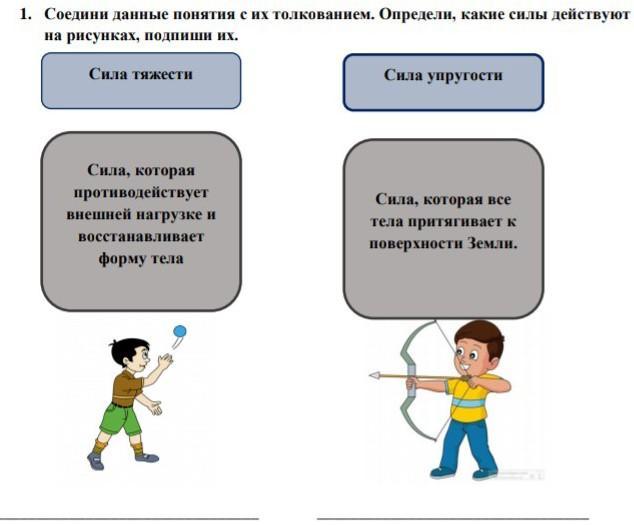 Сила тяжести - притягивает к земле, рисунок с мячиком.