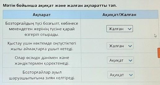 Мәтін бойынша ақиқат және жалған ақпаратты тап.