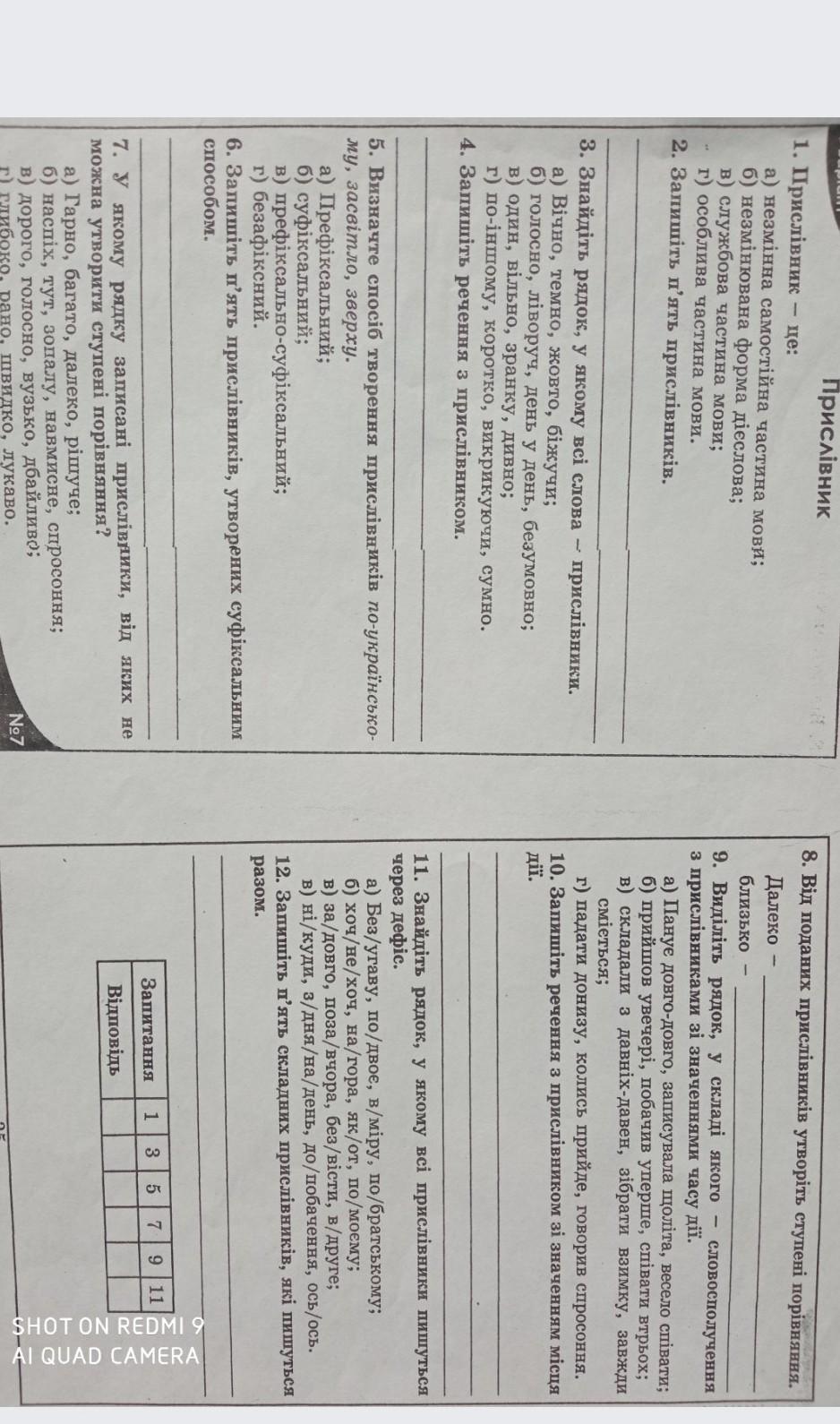 7. б) наспіх, тут, зопалу, навмисне, спросоння.