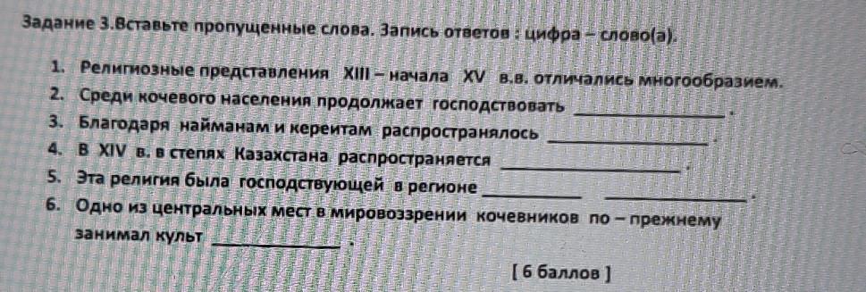 Задание 3.Вставьте пропущенные слова. Запись ответов : цифра - слово(а).