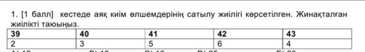 В таблице указана частота продаж размеров обуви. Найдите совокупную частоту