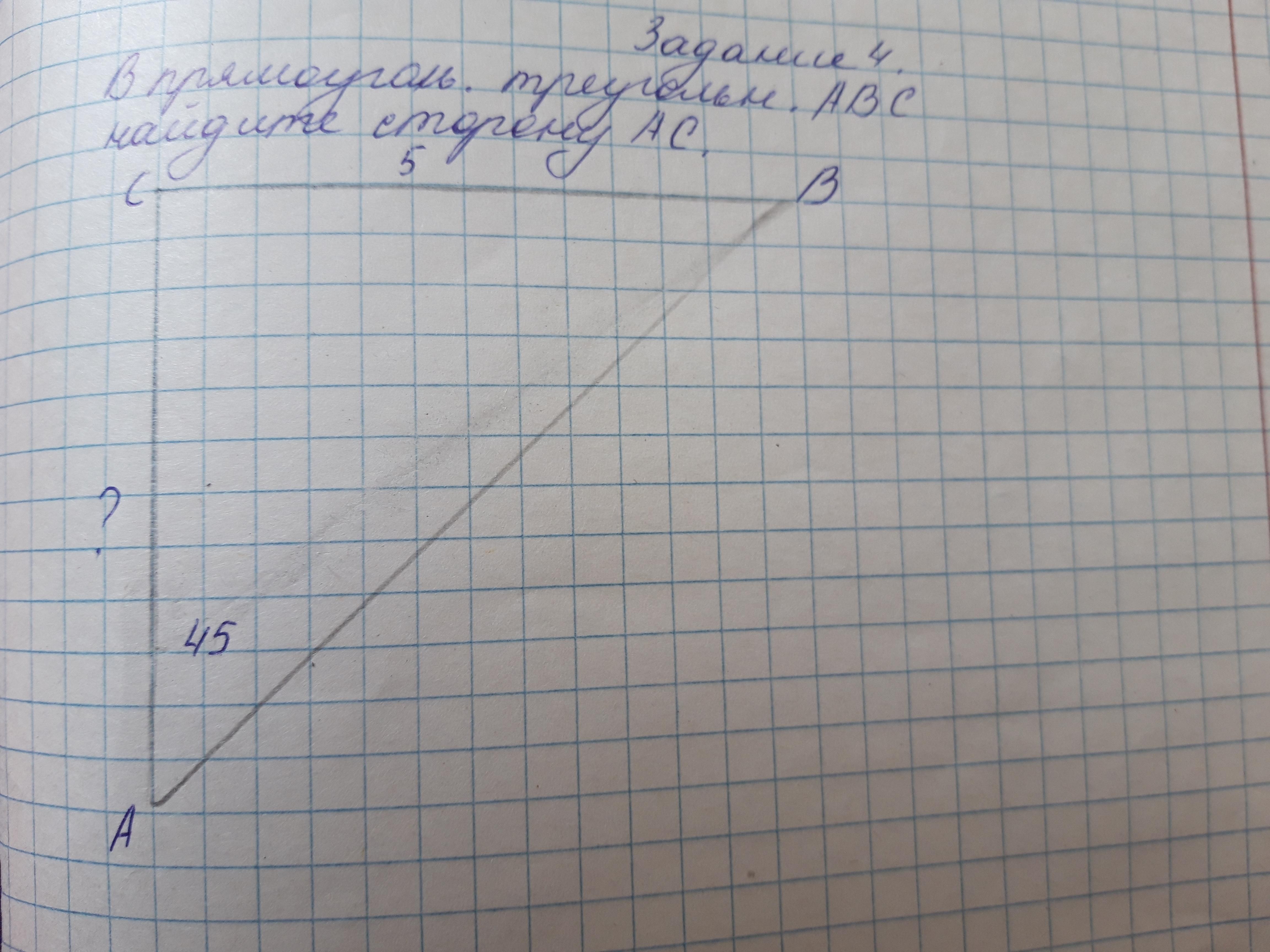 угол CBA= 90-45=45 следовательно треугольник равнобедренный. В равнобедренном треугольнике боковые стороны равны следует то, что AC=CB=5
