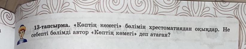 Короче ананы хрестоматиядан окы сосынтусинесин и потом жаз,ок? а то менде ктап жок комнате алмайм