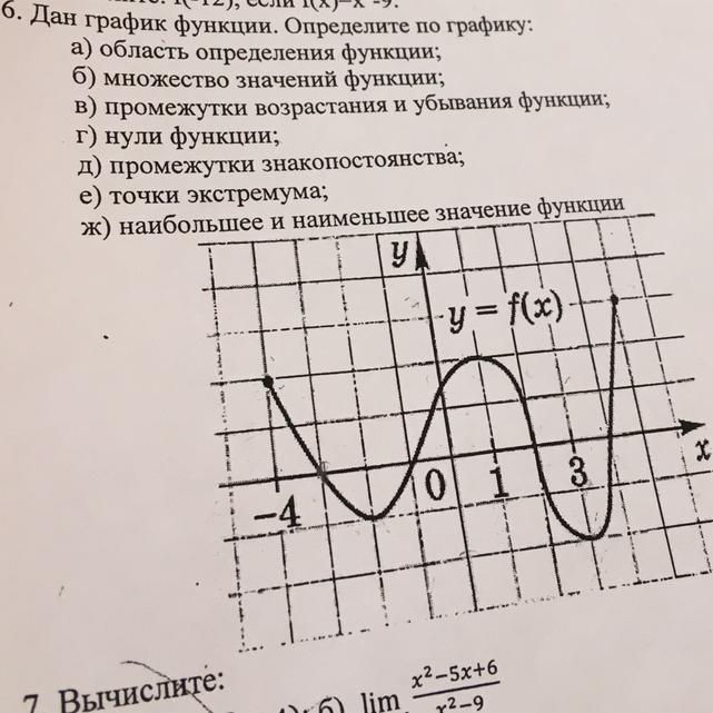 ж) наибольшее значение функции на отрезке [-4; 5]