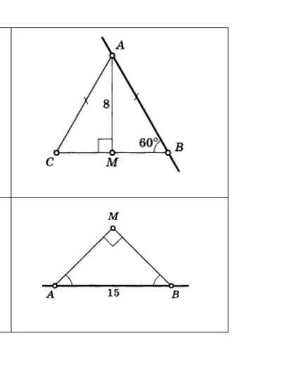 #2. Сумма острых углов прямоугольного треугольника по его свойству должна быть равна 90°, тогда угол M + угол A = 90°, а так как угол M = 60°, то угол A = 30°. Нам требуется найти BM. BM – это катет, лежащий напротив угла в 30°, значит BM = 1/2 × AM, а так как AM = 30, то BM = 15.