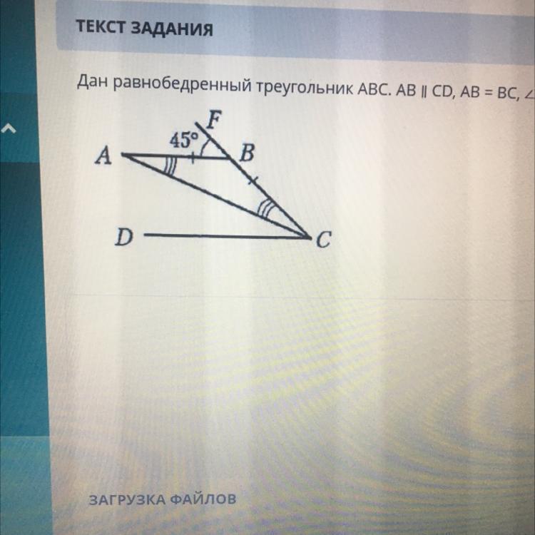 Дан равнобедренный треугольник ABC, AB || CD, AB = BC, ZABE = 45°. Найти: ZACD.