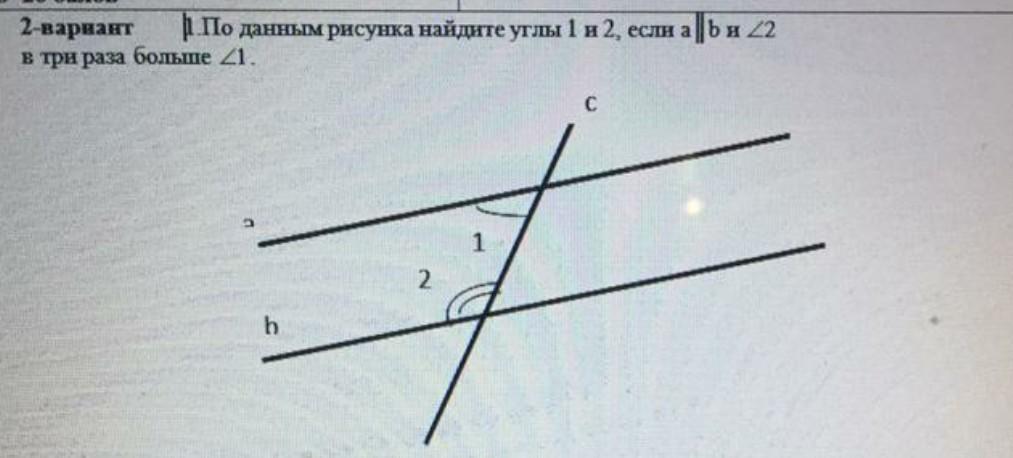 ∠2 в 3 раза больше ∠1. Значит, ∠2 = 3∠1 (угол 2 равен трем углам 1).