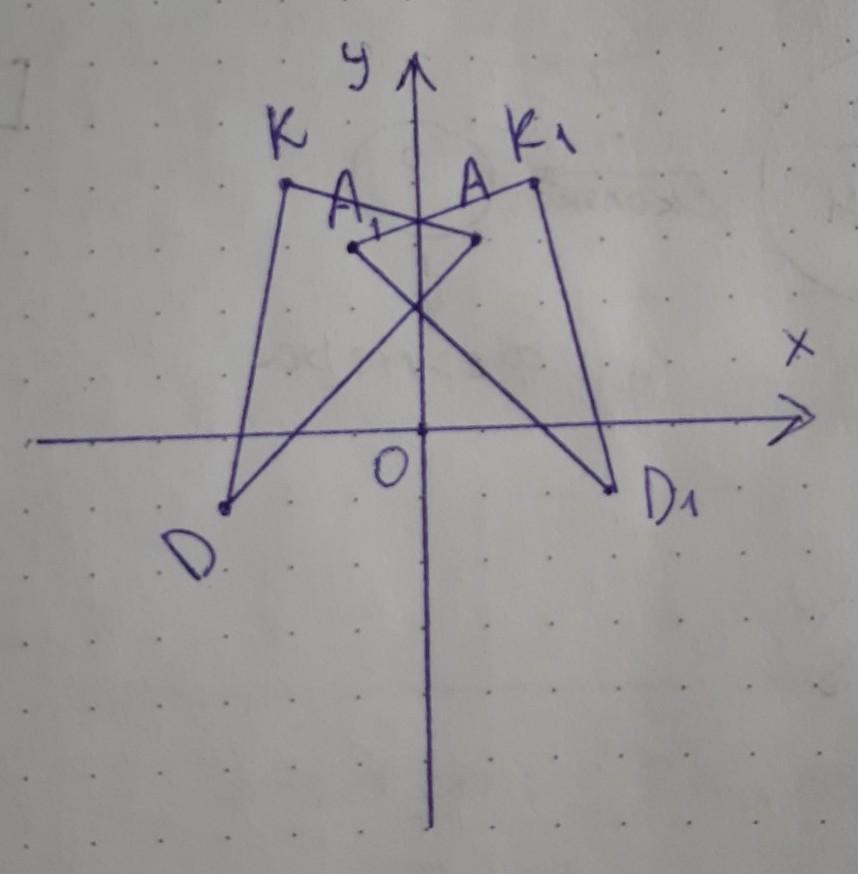 Постройте треугольник A1K1D1 , симметричный треугольнику AKD относительно оси ординат.