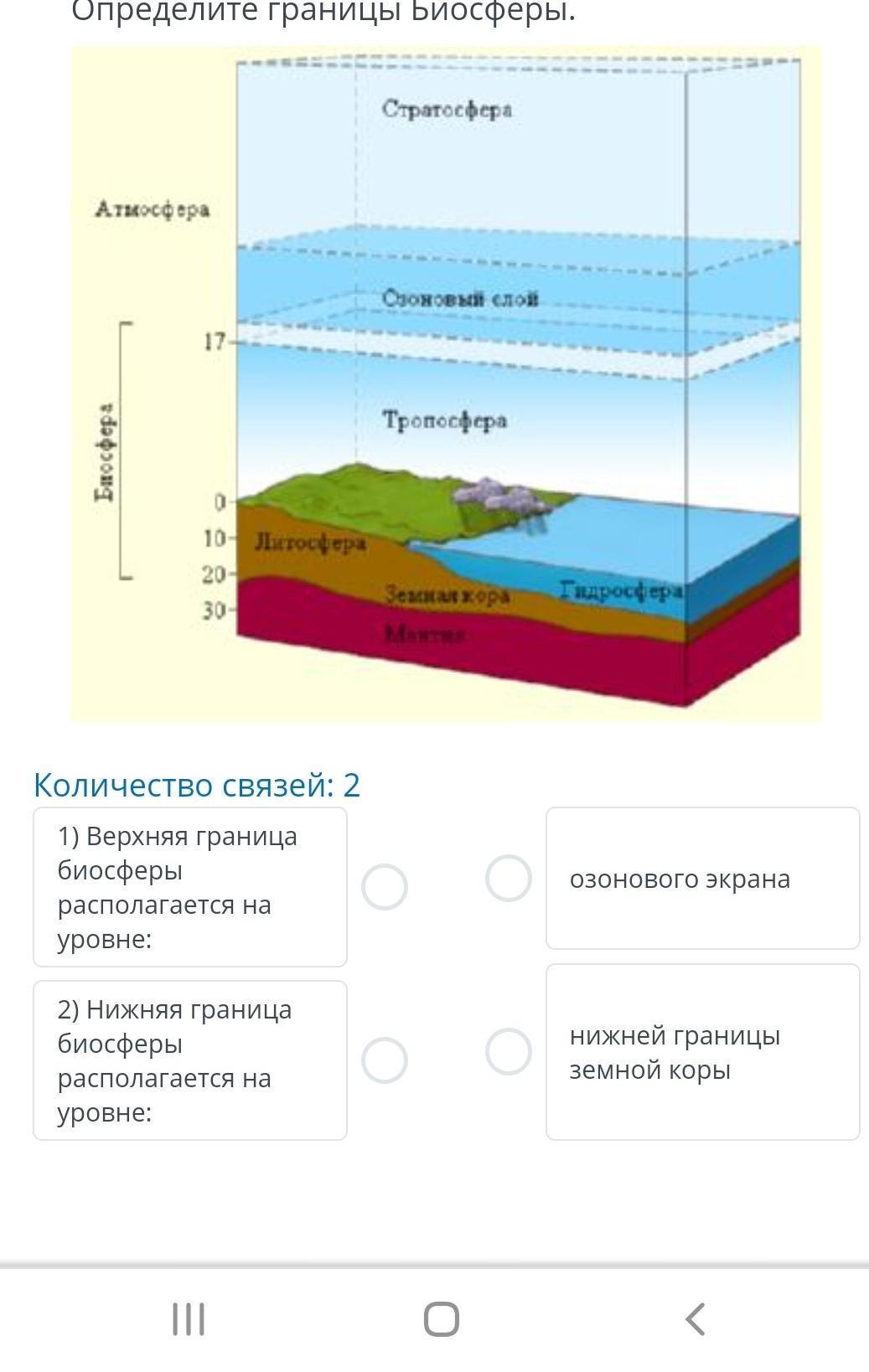 2) Нижняя граница биосферы располагается на уровне: нижней границы земной коры