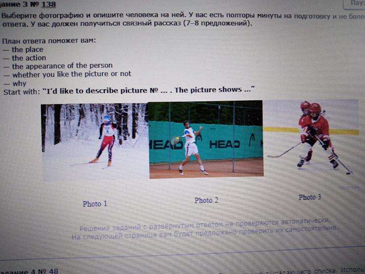 i’d like to describe picture n2. The picture shows the boy is playing tennis on a tennis court. We can see that boy is wearing a special form. He is tall and has got black hair. It is warm and sunny there, because boy wearing like it is summer.