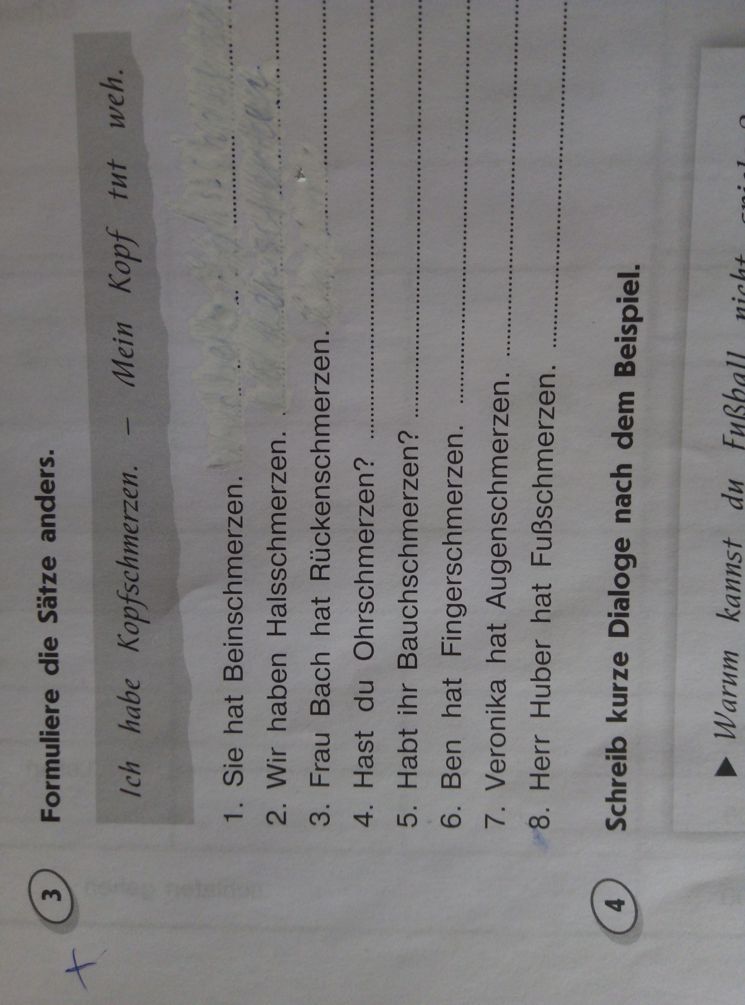 3 - Frau Bachen's(ihr) Rücken tut weh.