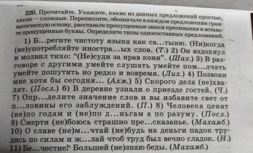 Задание 2.Переписать ,обозначить грамматическую основу, расставить пропущенные знаки препинания и вставить буквы. Определить тип односоставных предложений.