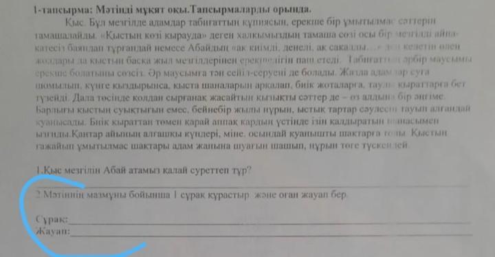 Жауап:Қыста адамдар қардың жауғанын,аққала жасағанды,қар атысқанды тамашалайды.